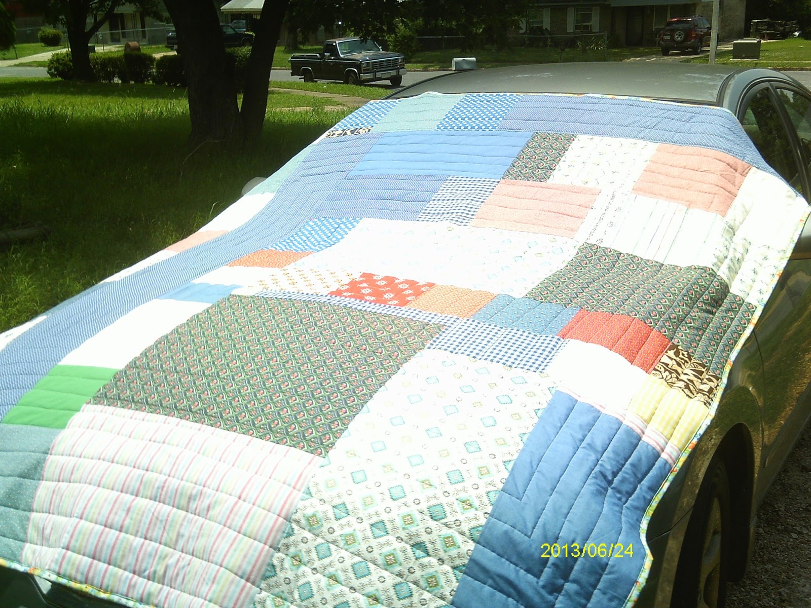 This quilt is an improvisational pieced quilt which means that there is no set pattern that was followed, instead pieces of fabric were randomly sewed together that were pleasing to the eye of the quilter. This quilt top came to me through my aunt. My aunt's friend is an older lady and she had been ill and had this quilt top that she had started to piece by hand. The lady knew that I quilted, so she gave it to my aunt to give to me because she didn't think that she would ever finish it. When I received it, the hand sewing was not secure and it would have come apart in the first wash. So, I decided to rip out all of the hand stitching and sewed everything again by machine. I quilted it, put on the backing and the binding. I kept her original fabrics for the top and I pieced the back from my personal stash. I decided that I would re-gift the quilt to the lady so I gave it back to my aunt and my aunt gave it back to the lady. Ironically, the lady's birthday was the next day and she said that this was the best birthday gift that she had ever received. I am happy that she is enjoying her quilt and that I was a part of this journey.